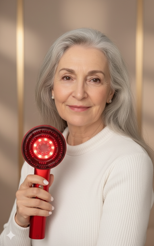 Feel your hair come back to life with gentle red-light and micro-vibration therapy that re-awakens dormant follicles and helps restore fullness — naturally, safely, and from the comfort of home.