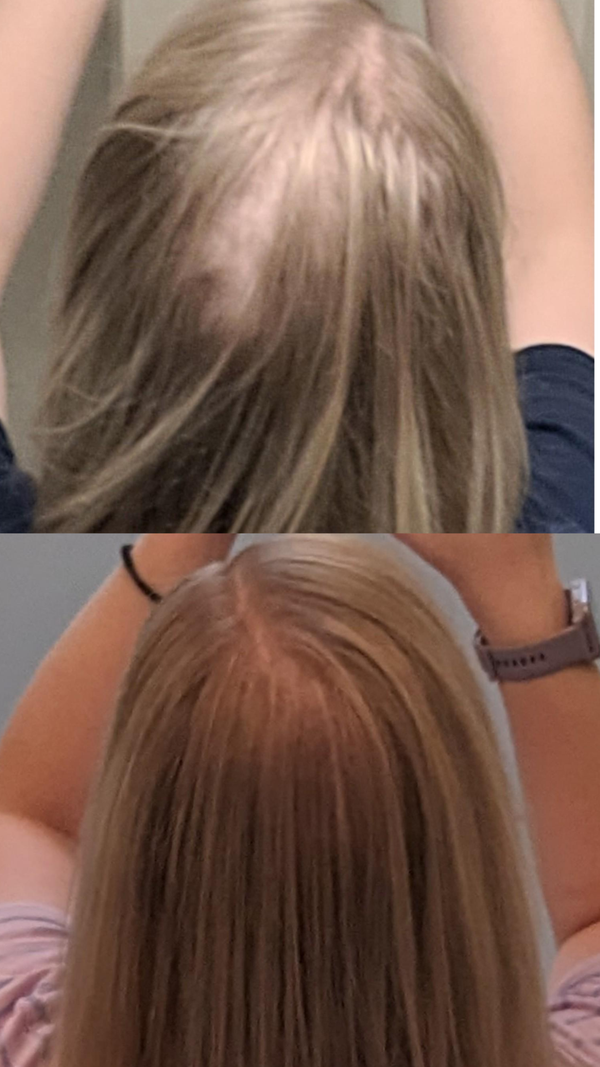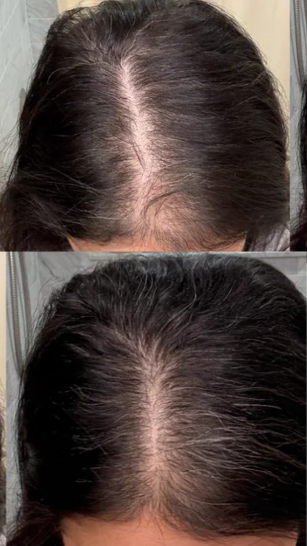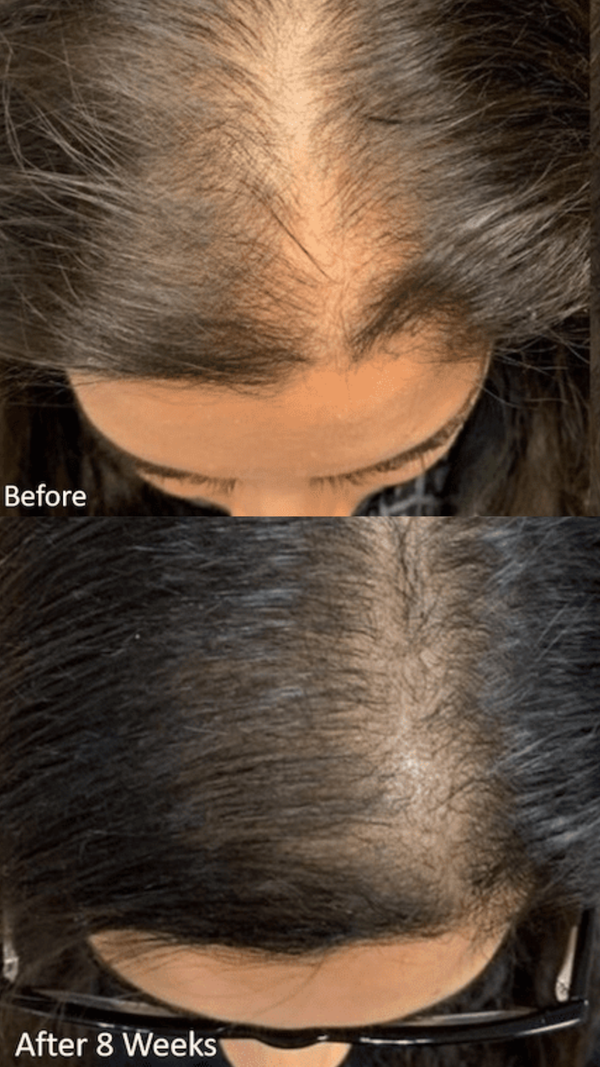 Every scalp heals at its own pace, but most users notice less shedding in 3–4 weeks, baby hairs by 8–12 weeks, and visible thickness around 16 weeks of consistent use.